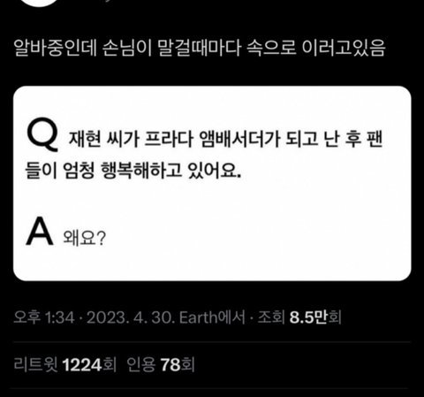 -> 트위터 ㄸㄴ들이 자기 안받아줄거같다고 조오오온나 패고 무슨 퀸ㄷㅈ인가? 그사람이 재현보다 낫다고 알티 몇만 태움