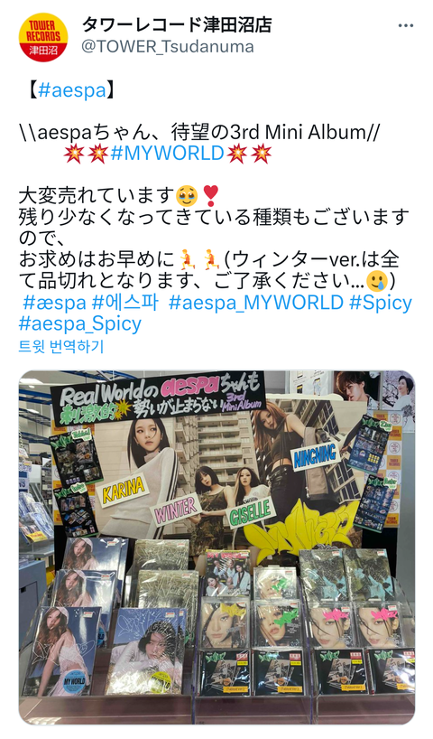 에스파 앨범 잘 팔리고 있다 남은거 서둘러라