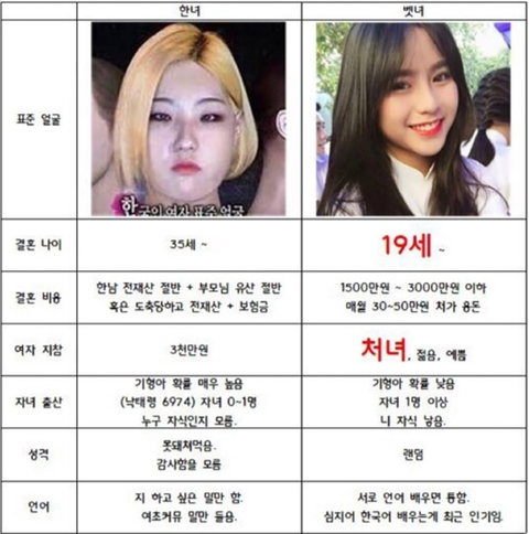뭐 평범하게 외국 여자와 연애하고 결혼하는 건 그럴 수 있다 쳐도 결혼비용에 액수까지 상세히 적어놓은 거 보면 말 그대로 ‘돈을 주고 외국 여자를 사온다’ 는 것 같은데