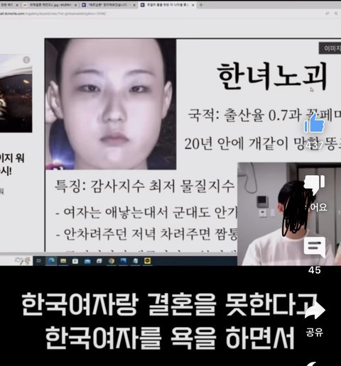 기형아라느니 성격이 못돼쳐먹었다느니… 외국 여자랑 결혼하고 싶으면 하는거지 왜 같은 국적의 한국 여자들을 저렇게까지 표현하는 거…?