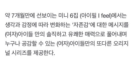 난 개인적으로 알러지가 더 취향이긴 하지만, 이번에 비주얼이 대박인듯. 특히 전소연이랑 슈화 둘이 비주얼 포텐 터진 거 같음. 뭔가 나는 전소연이 노래가 성공하든 안하든 계속 프로듀싱 해줬으면 좋겠어