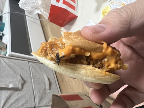 3줄요약1. 햄버거 마지막 한입에서 벌레나옴2. 슬리퍼 신은 직원이 회수해감, 벌레ㄴㄴ 걍 모기임. 이동이나 포장 중 들어간듯ㅋㅋ3. 앞으로도 KFX 먹을거지? 선처좀