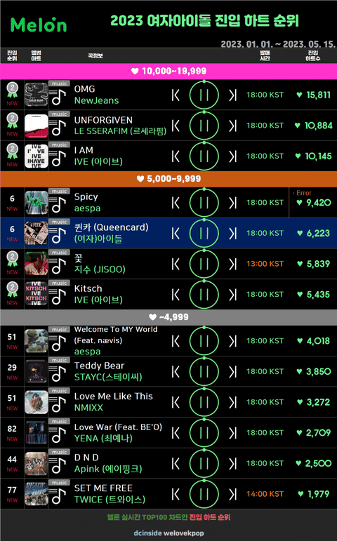 2023 여자아이돌 멜론 진입하트