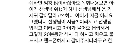 선생님 밥 드시는 중에 자기 애 기저귀를 갈아주지 않음(정서적 학대라고 이야기 하는 가장 큰 이유)
