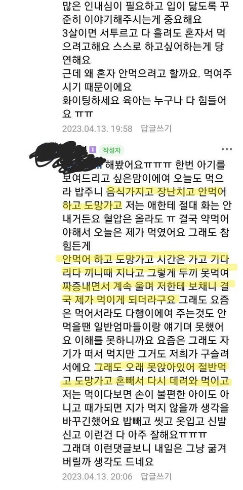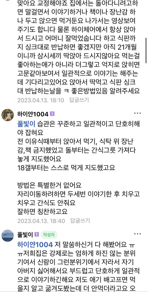 음식 앞에두고 장난치고 도망가지만 집에서 절대 훈육은 안 함. 어린이집에서 도망가는 아이 잡아다 칭찬해주면서 김에싼밥 먹여주길 원함.