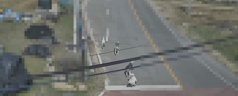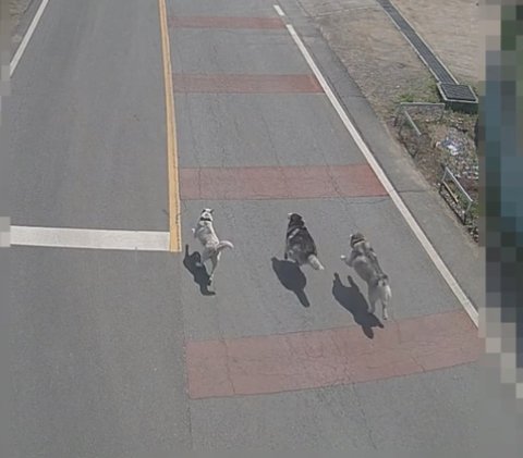 그런데 맞은편에서 목줄이 없는 상태의 개 4마리와 남성 견주 한 명이 있었습니다.