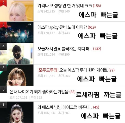 에스파 안까이는 글만 캡서 해서 가져온거만 봐라 ㅋㅋㅋ 톡선만 봐도 에스파 까글 득실하구만