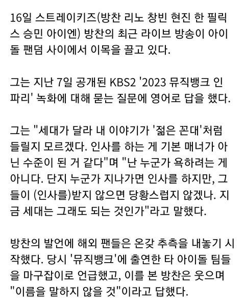 자기도 인사 못보고 지나쳤을 수 있다고 쿠션어 다 깔면서 말하면 그냥 팬들한테 궁예해서 욕해달라는거지