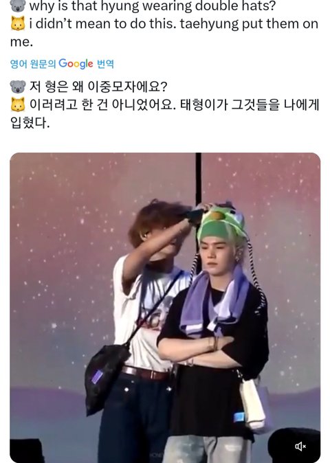 모자씌우고 만족스럽게 끄덕이는 태형이 제법 킹받음ㅋㅋㅋㅋ가만히 있는 민애옹 ㄱㅇㄱㅋㅋㅋㅋㅋㅋ
