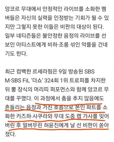 앵콜 하나가지고 글이 몇개나 올라오는거야... 저번에 릇 앵콜 까글도 보면 김채원 허윤진까지 막 내려치던데 그거부터 너무 속보여 ;; 잘하는 멤버들까지 아득바득 깎아내리려고 하더만 작작좀 해라