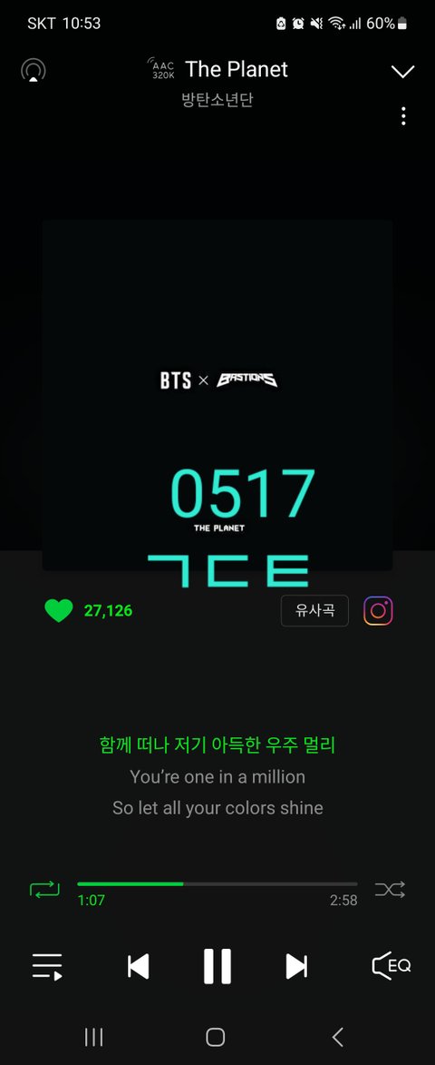태형이가 인스ㅅ에 올린 노래 핫트랜딩송 차트