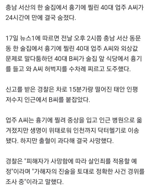 피해자 업주분은 사건발생 24시간만에 숨졌습니다