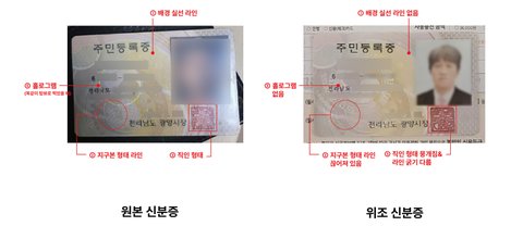 +추가) 위조 신분증과 원본 신분증 비교한 사진 첨부합니다.