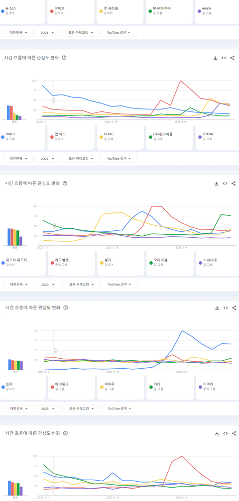 2023년 현재까지 국내 유튜브에서 가장 많이 검색된 케이팝 여자아이돌그룹 TOP20