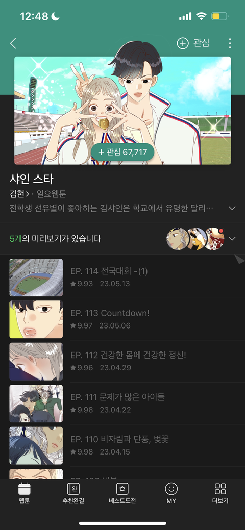 육상하는 애들인데 ㄹㅇ존잼... 청춘스포츠물인데 로맨스도 있음 글고 실력 성장하는게 ㅈㄴㅈㄴ재밋음... 전에 여기에 쿠키 개많이 써서 반성하는 겸 잠깐 웹툰 안봤었는데 방금 밀린거 다 몰아봄ㅎ