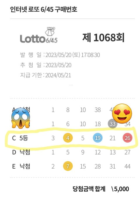 말했던거 기억나? 어떤 모아분 또 5등 당첨됨ㅋㅋㅋㅋㅋ