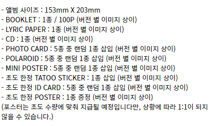 오죽하면 예판 첫날에 6명 중국바에서 전부 구성품으로 지랄함. 정규인데 포카 버전별 다른게 포카 1장이 전부인거 실화냐고 ㅋㅋ