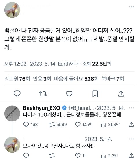 무슨 앞뒤맥락 다 짤라먹고 백현이 양말공구연대 하는거 자체가 어이가없음