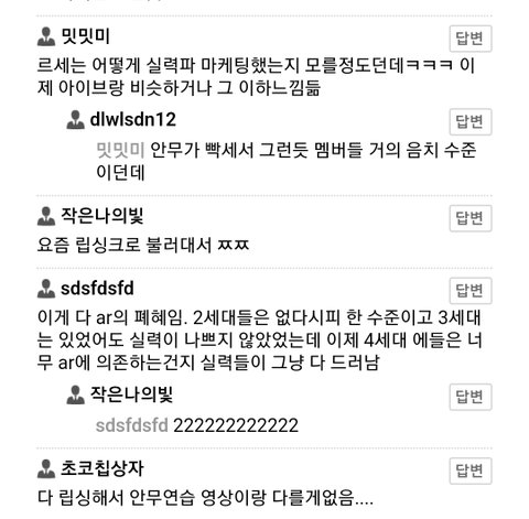 대부분 글이 남자 연애 근육 얘기들 뿐인데 너무 뜬금없어서 들어가봤더니 댓글들이 르세라핌 라이브 ㅈㄴ 못한다고 해서