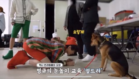 강아지한테 엎드리라고 같이 엎드리는 범규 넘 귀여운데 의상 무슨 일이야?ㅋㅋㅋㅋㅋㅋㅋ