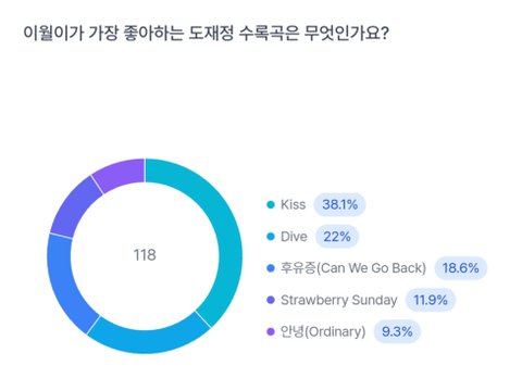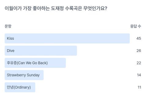 Kiss(45표), Dive(26표), 후유증(22표), 스선데(14표), 안녕(11표)