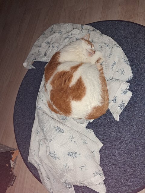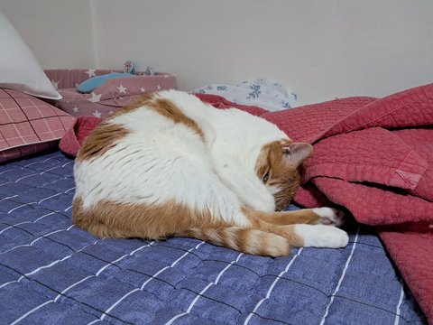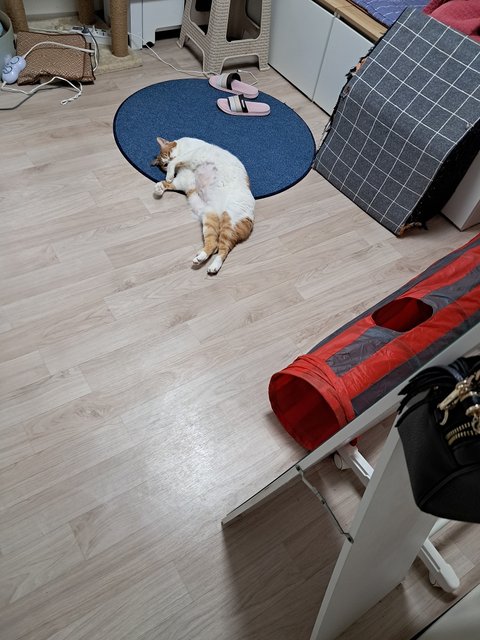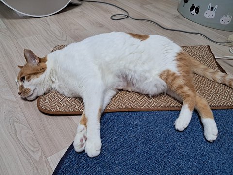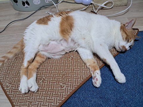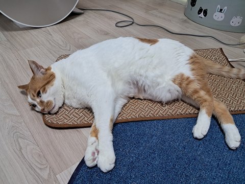 집사 배 찜질할려고 하는데 본인이 먼저 드러누워 주무심.