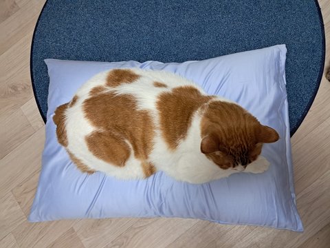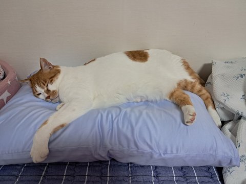 집사 기능성 베개를 샀는데 본인 침실로 이용하는 대단한 도칠이.