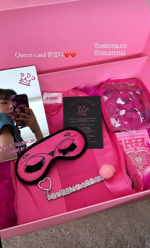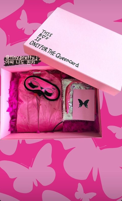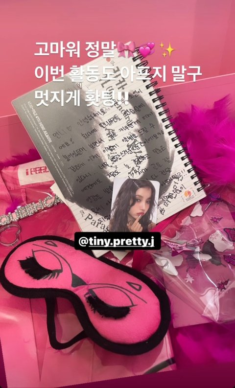 투명 파우치, 안대, 로브, 거울, 포토카드, 포토북, 키링, 깃털(?)