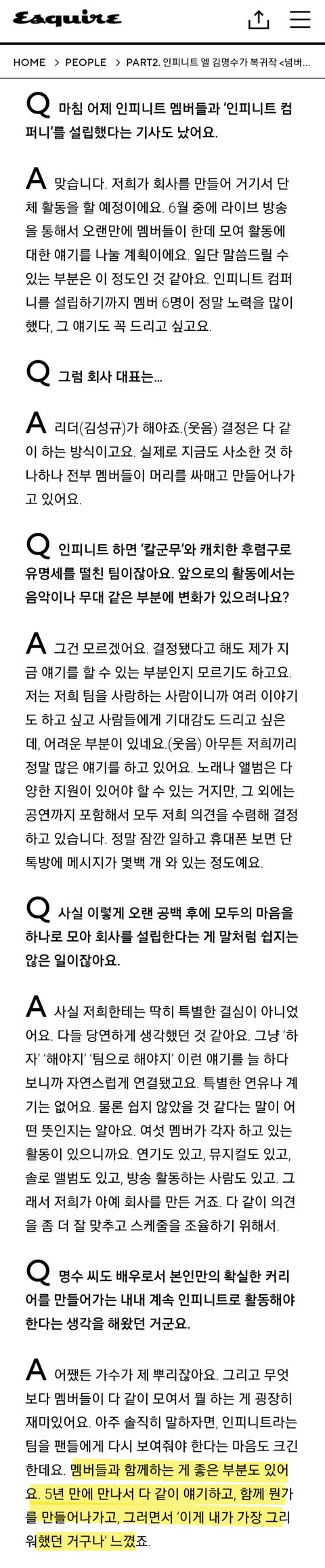 명수 에스콰이어에서 인피니트 컴퍼니 언급 부분
