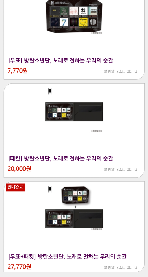 세트로 사나 우표랑 패킷 각각 사나 구성품은 같지?