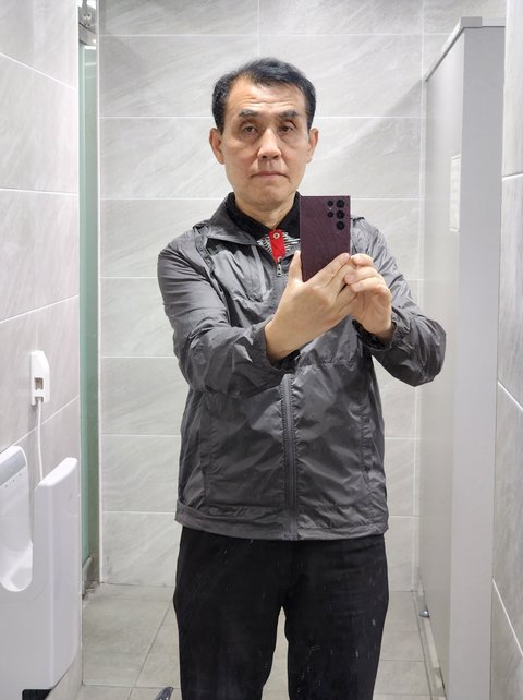 (사진4 설명) 경기도 포천시 포천힐마루cc 클럽하우스 거울속에 비친 사진작가(최대우) 모습. <셔터 속도 1/60s, 초점 거리 69mm, 조리개 f 2.4, 촬영 감도 ISO 320, 삼성 S22 울트라 렌즈 사용, 촬영일자 2023.5.21 오전 09:02, 최대우 촬영, 주소: 경기도 포천시 영중면 거사리 산107