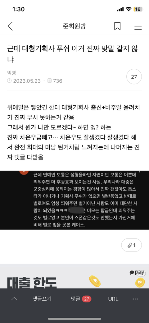근데 대형기획사 푸쉬 이거 진짜 맞말 같지 않냐