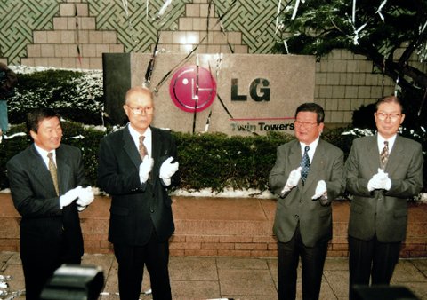 (사진2 설명) 1995년 LG CI 선포식에 참석한 고 구본무 회장(왼쪽) [사진=LG그룹]