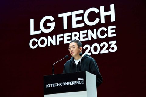 (사진3 설명) 구광모 LG그룹 회장이 서울 마곡 LG사이언스파크에서 열린 LG테크콘퍼런스에서 오프닝 스피치를 하고 있다. [사진=LG]