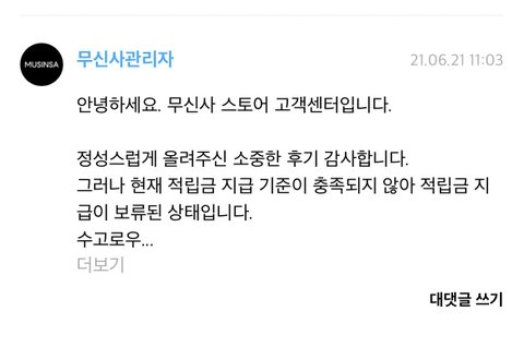 ㅅㅂㅋㅋㅌㅋㅋㅋㅋ무신사 사무적인 태도 섭섭하네요 잘생겼으니까 적립금 10배로 주세요