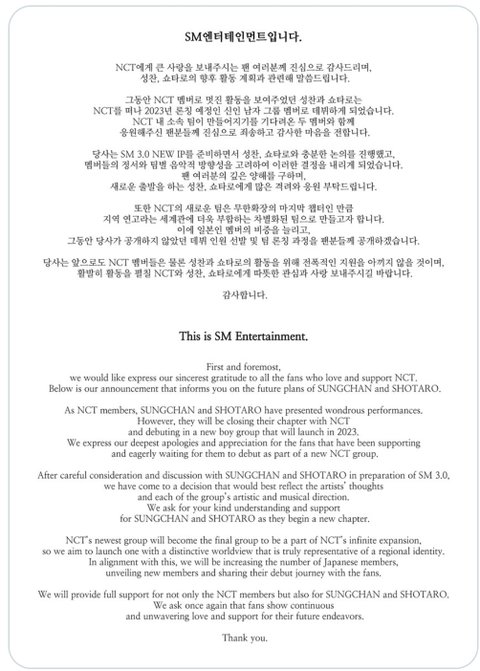 성찬 쇼타로는 엔시티 탈퇴 후 차기 신인그룹에 합류