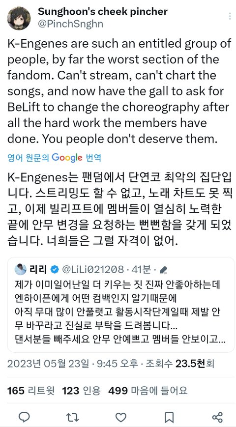 하이브는 신경도 안쓰긴 하겠지만 해외팬 vs 국내극성팬.
