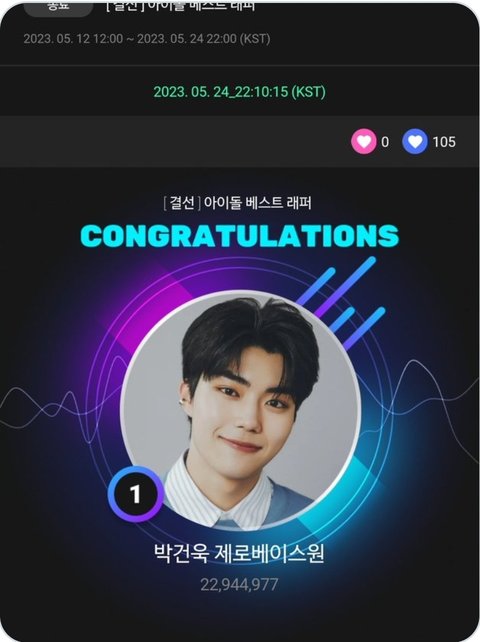 각그룹 해외팬덤들 이거 1위시키려고 엄청 투표독려하던데 ㅎㄷㄷㄷ결국 박건욱이 1위 차지 ㅎㄷㄷ 대박