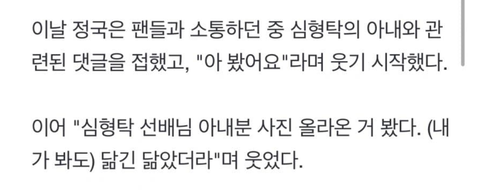 정국이도 심형탁 부인 닮은거 봤네ㅋ