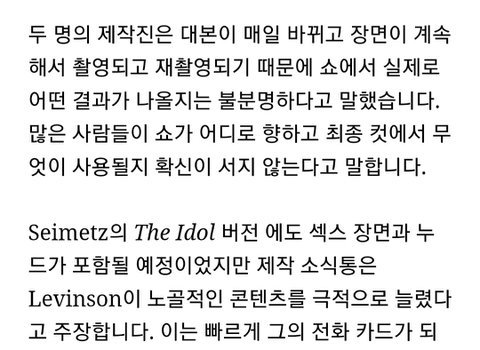 6. 현재 더아이돌 내용 더럽고 이상한거 부정하는게 아님