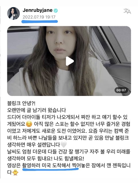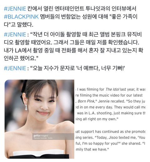 (제니 인터뷰 : 작년 본핑크 앨범 준비할 시기에 더아이돌 같이 촬영했음 / 비중 있는 역할은 아닌 만큼 작년에 이미 LA에서 촬영하고 끝냄)