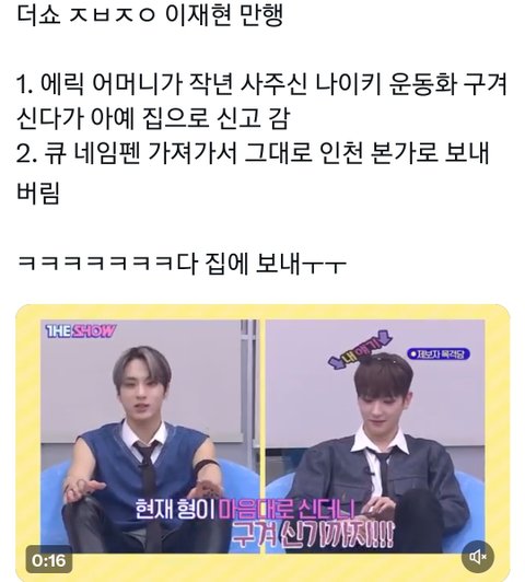 에릭 얘기 넘 충격적인데?; ; 에릭 어머니가 에릭한테 사준 운동화를 이재현이 말도 안하고 집에 가져갔대