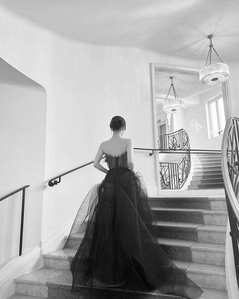 목걸이는 에스파가 앰배서더 하는 쇼파드꺼, 드레스는 국내 디자이너 브랜드 ㅇㅇ 개취로 드레스가 신의 한수라고 생각