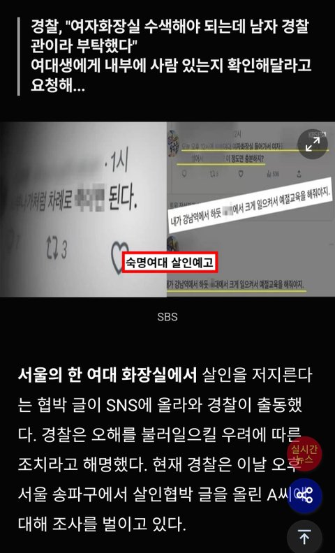 트위터에 숙명여대 살인예고글 올라와서 출동했는데