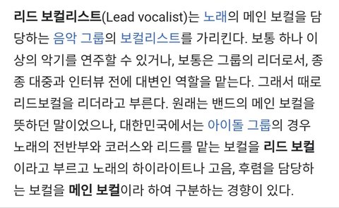 아직도 음악 평론가들은 리드보컬을 메인보컬의 의미로 쓰는 경우가 많음