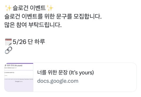 오늘까지 슬로건 문구야!!!!!! 다들 달려가!!!