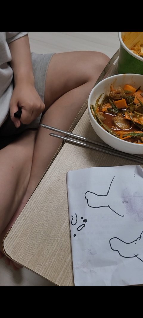 그래서 제가 펜하고 종이룰 가져와서 그려보라고 했습니다