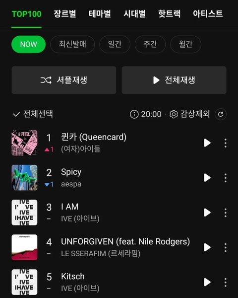 걸그룹들 거의 다 1위해서 보기 좋음ㅋㅋ 아이브도 키치,아이엠 다 1위 찍었고 뉴진스도 내내 디토,오엠지가 1,2위였고 에스파도 스파이시 1위에 수록곡 두개도 순위 높고 아이들도 퀸카 1위에 알러지도 탑텐 가겠던데 다들 윈윈하는 중 연간 탑텐에 디토 오엠지 아이엠 키치 스파이시 퀸카 다 있었으면