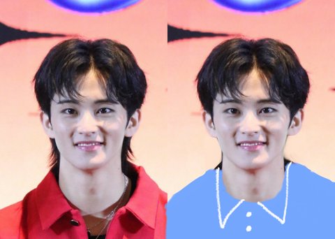 왼쪽도 ㄱㅊ은데 뒷머리 없애고 옷 색깔 바꾸니까 훨 나음 뒷배경도 걍 흰색이면 더 어울릴 듯