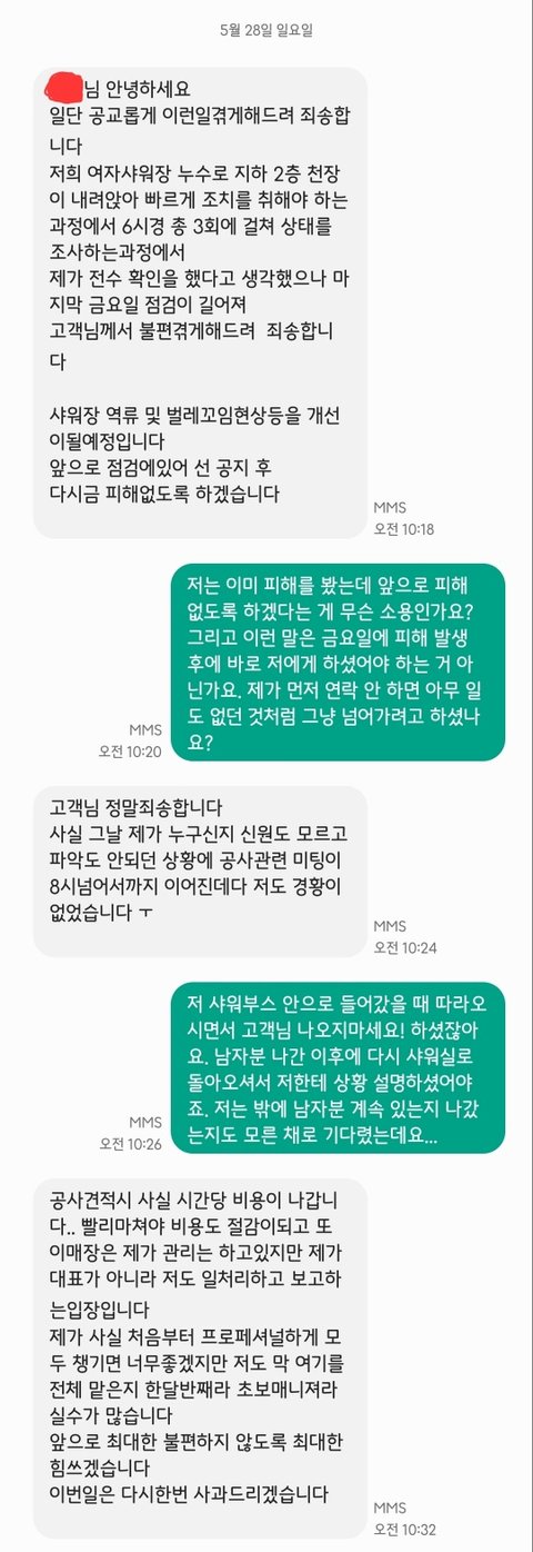 오늘 아침에 헬스장에 전화했는데 전화 받으신 분이 본인이 당사자가 아니라서 상황을 잘 모르겠다고 하더라구요. 사건 당시 샤워실에 있던 분이 그냥 직원분은 아닌 것 같아서 그분 인상착의를 설명하면서 혹시 그분이 지점장이 맞는지 여쭤봤습니다. 지점장이 맞다고 해서 그분이랑 직접 대화하고 싶다고 하니까 내용 전달하겠다고 해서 통화 종료했고, 통화 이후 온 문자 내용을 아래 첨부합니다.